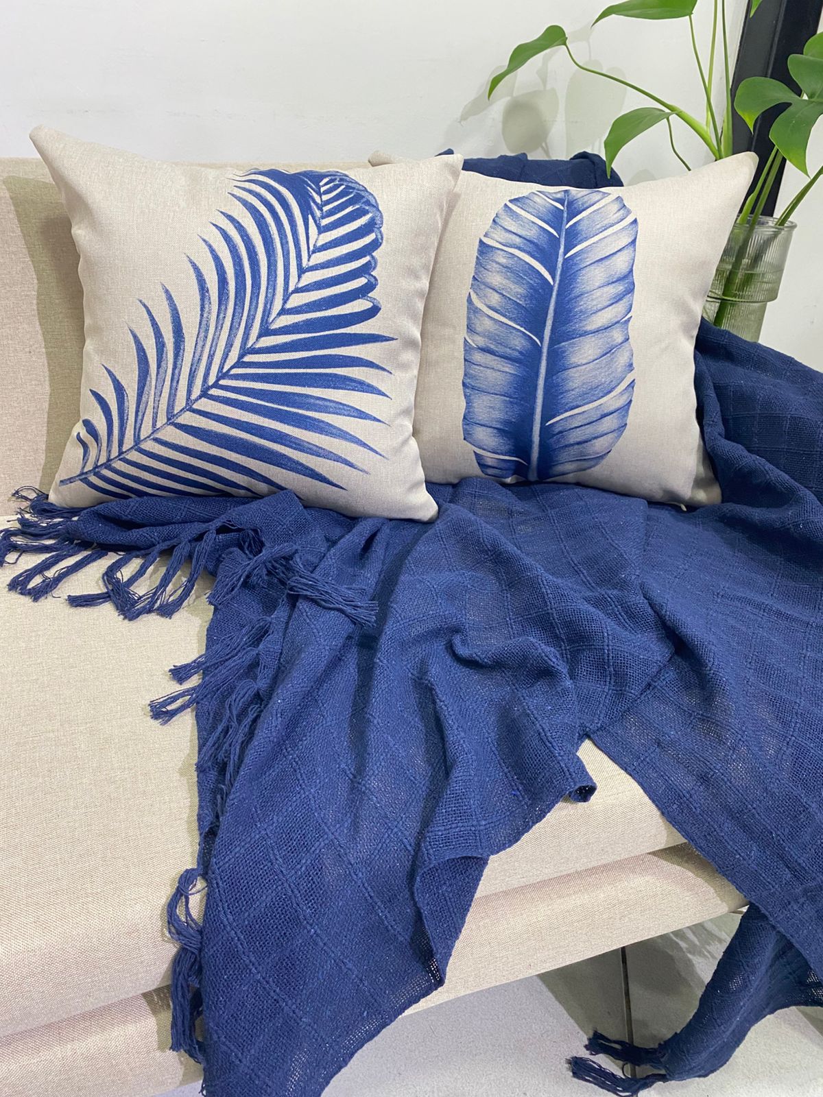 Kit Almofadas – 2 Capas com Estampa de Folhagem Azul